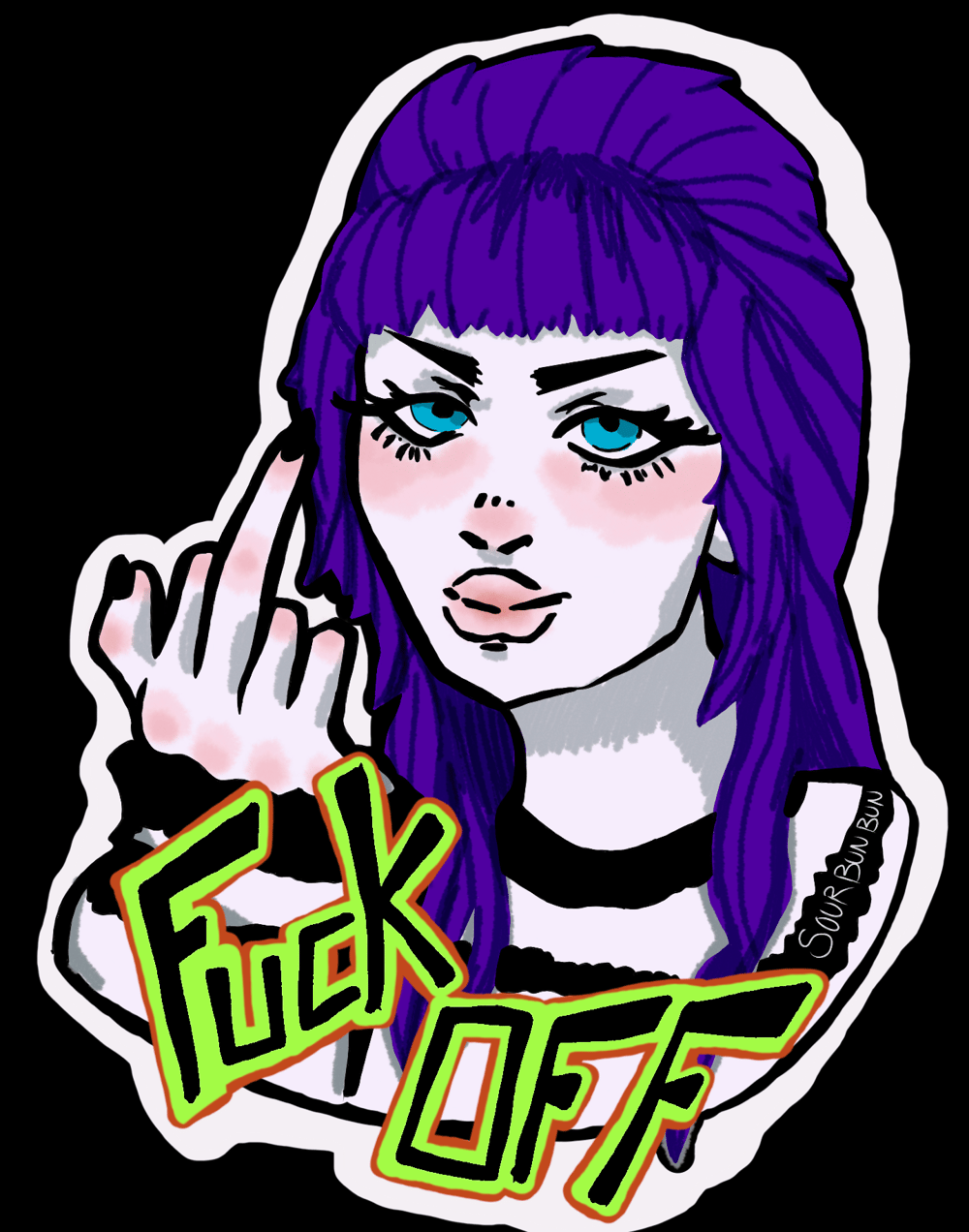 Ever wanted to just scream at the world when you can't? Yeah, me too. That's why I made this! This gal is here to say F*CK OFF when you're not able to! Slap her on any smooth surface and you're ready to go!