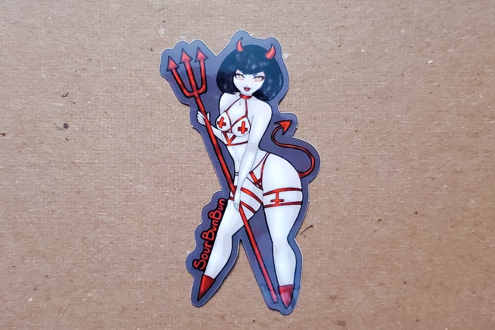 This sticker is a scribble of my Devil set from Halloween 2020!~ I couldn't help but turn her into a lil saucy sticker~ She's definitely a risqué one~ ;)