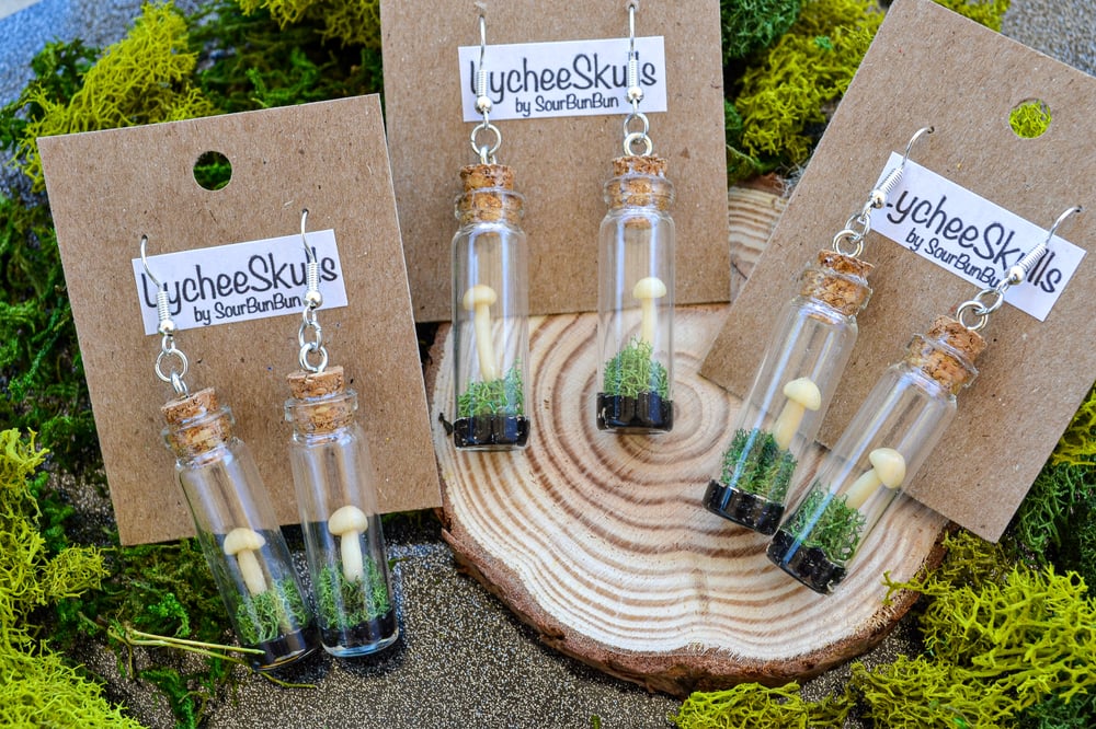 Mushroom Terrarium Earrings GLOW IN THE DARK
